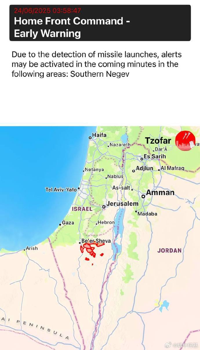內蓋夫響起警報。不知道是來自伊朗還是也門……