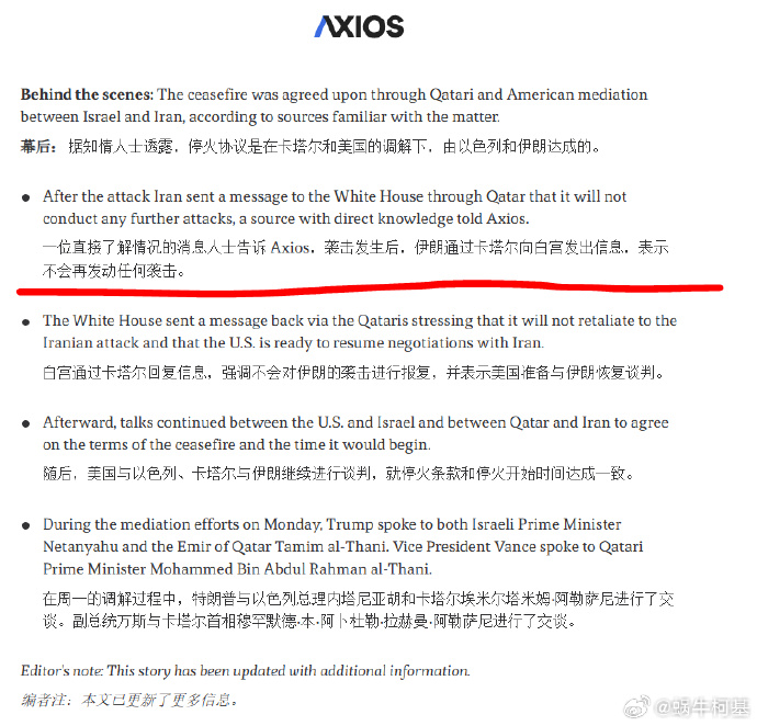 • 北京時間 12 點,伊朗襲擊停止,所有信源都稱伊朗和以色列均已宣佈停火生效