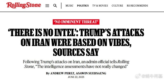 白宮消息人士稱,“沒有數據”,特朗普襲擊伊朗並非基於新情報,而是基於一種直覺,一種決策時刻的情緒。