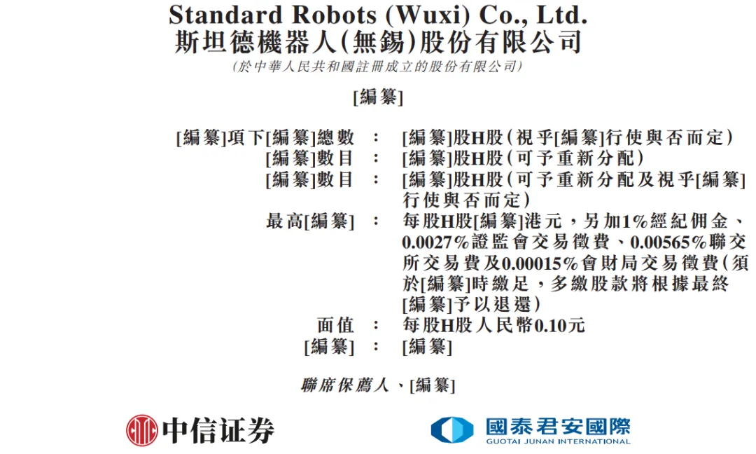 據港交所6月23日披露,斯坦德機器人(無錫)股份有限公司向港交所主板提交上市申請書,中信證券、國泰君安國際為聯席保薦人。