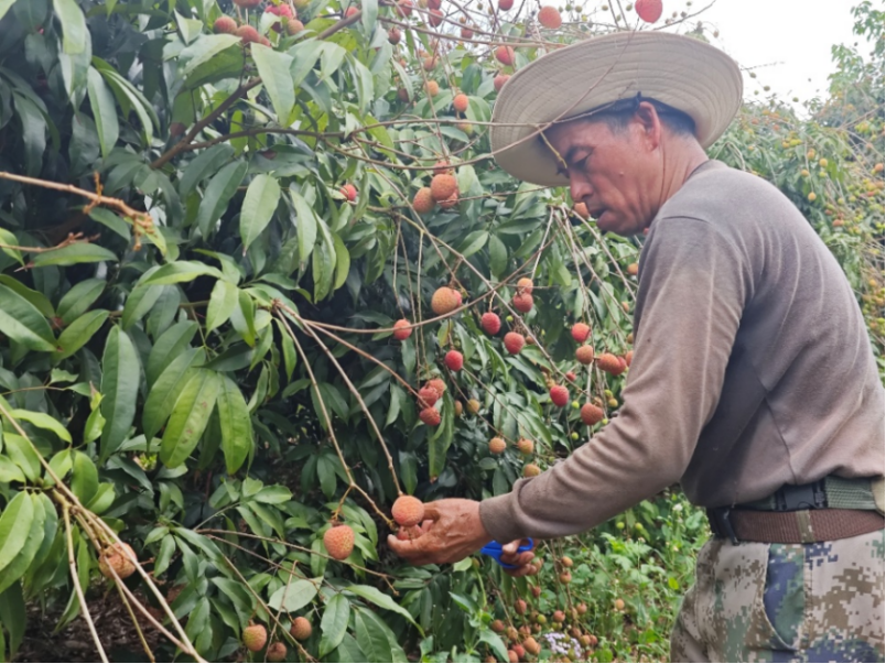 天氣的細微變化都將影響荔枝的生長,農户正在觀察。攝影:陳振豪