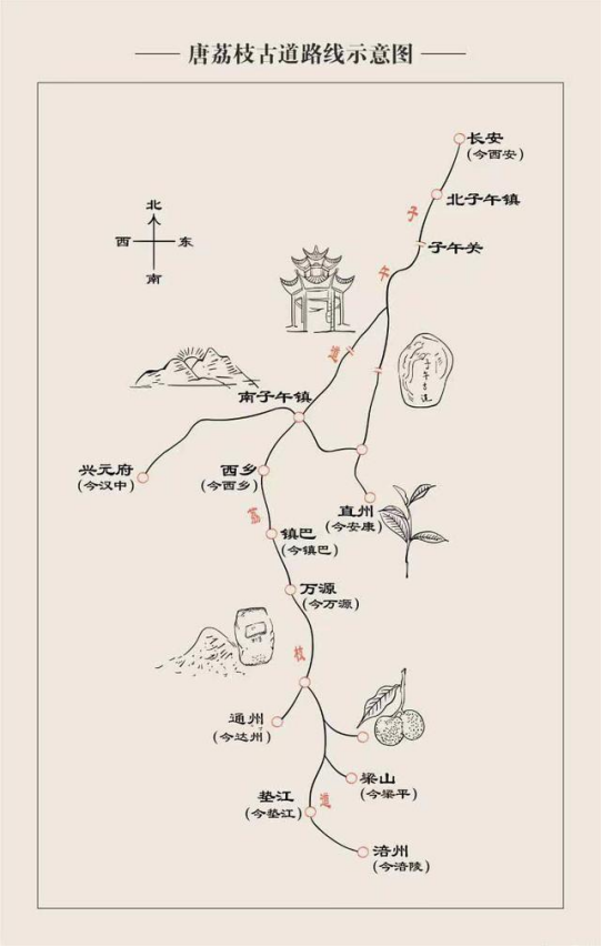不過荔枝道並不通嶺南,而是翻越秦嶺抵達涪陵和瀘州,這是離長安最近的荔枝產區。哪怕是地圖上與長安一山之隔的四川,都要八百里加急,還跑死了無數匹驛馬。