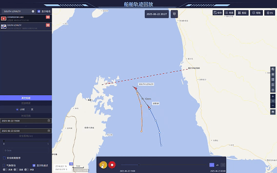 SouthLoyalty於6月22日晚8點30分左右掉頭