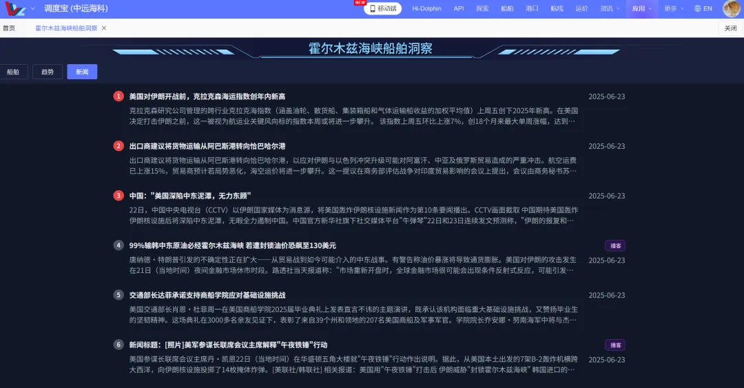 為了方便用户迅速獲取最新信息,加強安全監控,船視寶及時上架了霍爾木茲海峽船舶洞察應用: