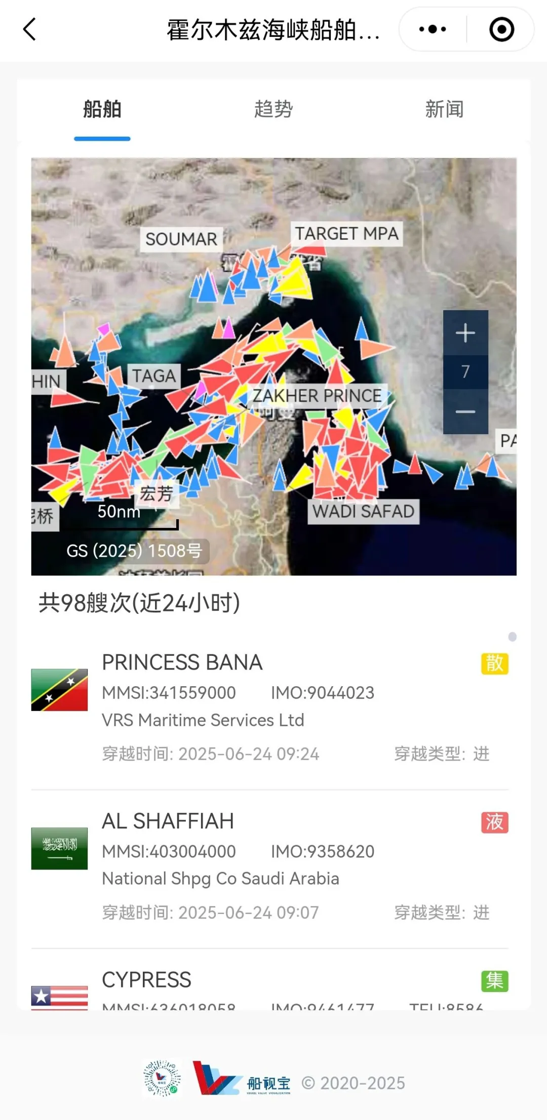 船視寶-應用界面搜索“霍爾木茲海峽”