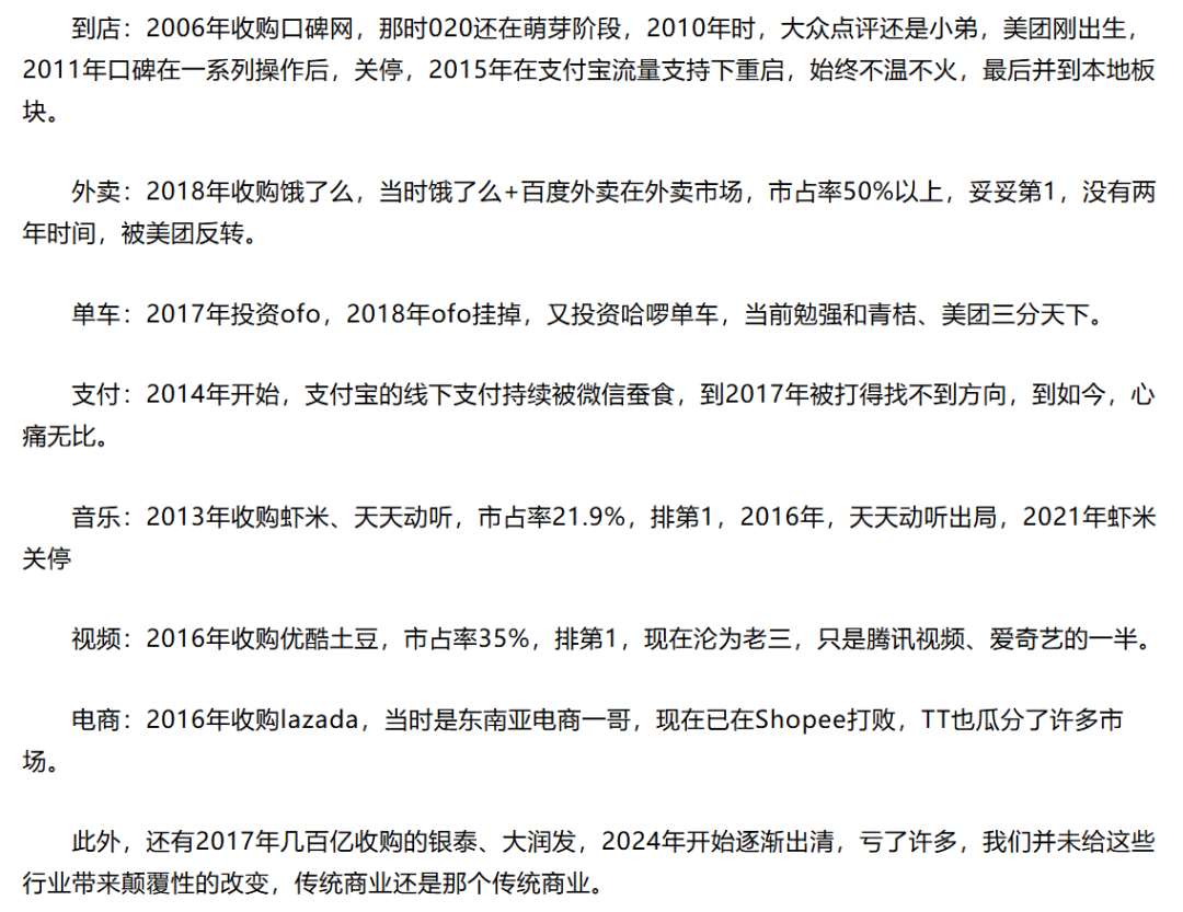 每每國家對互聯網巨頭實施監管,一定有人跳出來説監管他們就是扼殺創新能力。但元安指出,“自2015年開始,集團創新業務鮮有成功”,除了依託電商老本搞翻新,阿里內部創新基本“死的死殘的殘”(除了老闆統治利器釘釘),“市場機會還在,不過我們抓不住”。
