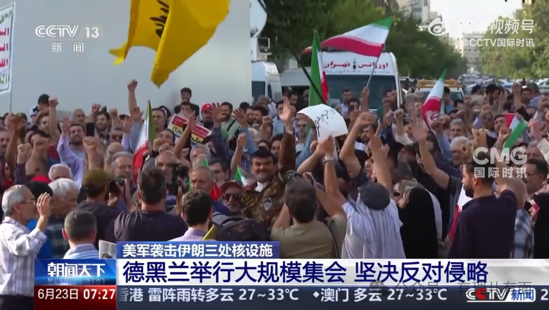 伊朗三處關鍵核設施遭美國襲擊後,當地時間6月22日,數以萬計的伊朗民眾聚集在首都德黑蘭的市中心廣場,反對美國和以色列的侵略行徑。伊朗民眾表示:“我們必須站出來,狠狠地給美國一巴掌。”