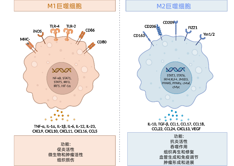 而M2型(抗炎型)更像“建築工”,它們負責清理“戰場”,通過分泌IL-10等抗炎因子抑制炎症,並分泌生長因子,促進組織修復和再生[2]。
