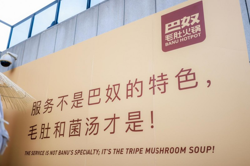 2012年,巴奴將自己的Slogan定為“服務不是巴奴的特色,毛肚和菌湯才是”,字裏行間透露出對海底撈的不服。