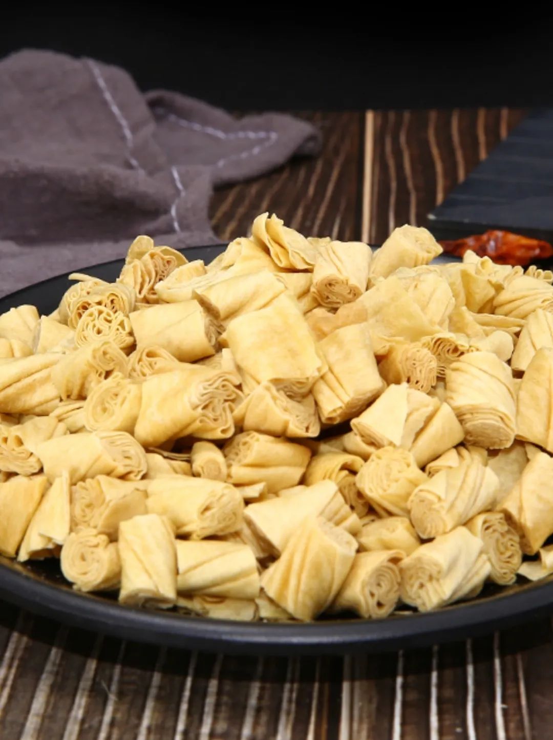 鷹嘴豆豆皮:菜店超市都有銷售,那乾癟的豆皮買回家後,根據自己喜好可以選擇涼拌還是炒制。抓適量的一把,放在温水裏很快就會泡發。