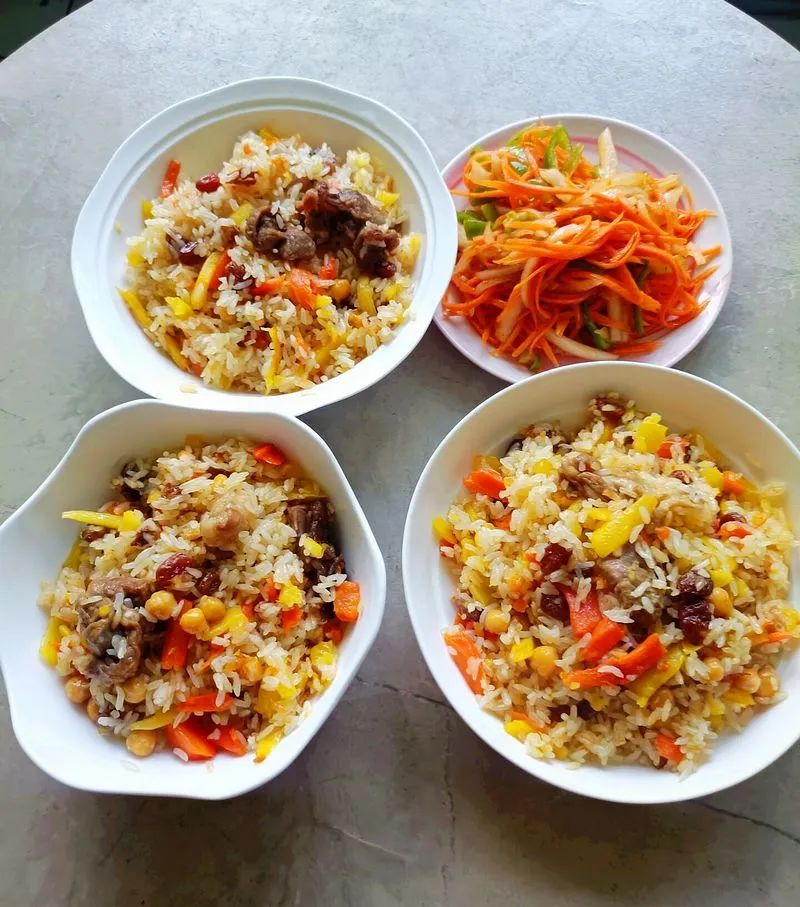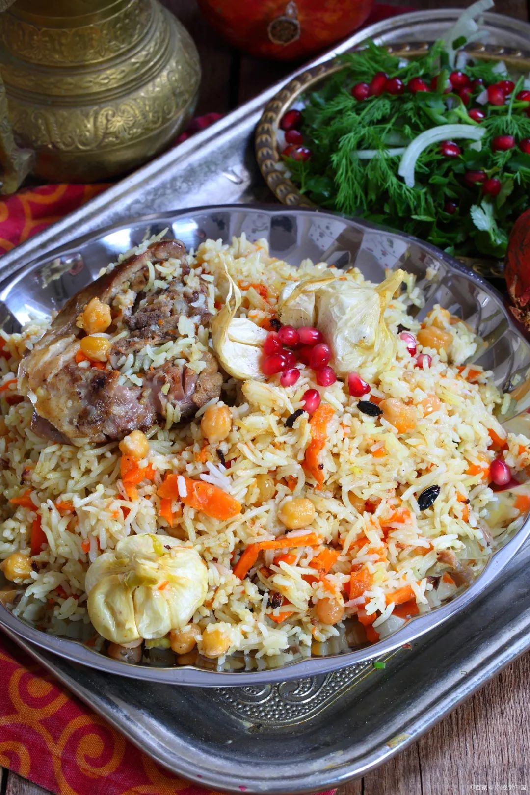 新疆抓飯有上百種做法,如果你來到新疆,可以連吃半個月抓飯都不帶重樣。有放了肉的和沒放肉的素抓飯搭配各種堅果。做抓飯時甚至可以放一把鷹嘴豆,就又成了鷹嘴豆抓飯。