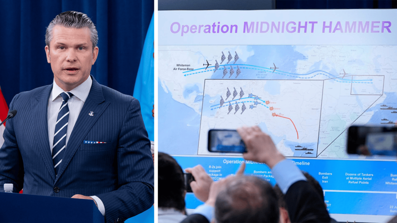 22日記者會上,美國防長赫格塞斯發言