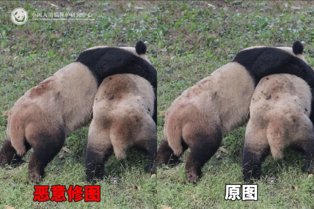 在網上,網友説經常看到大熊貓背部或臀部出現“洞”並且該“洞”疑似有“血色”,稱之為“血洞”,腦補畫面“飼養員用鐵棍打熊貓”,或者是“對大熊貓做黑實驗抽骨髓、脊髓、下丘腦”造成的……