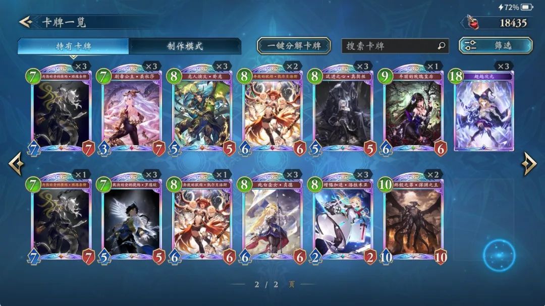 問題是大部分玩家的前期資源有限,基本只能組成一套完整的卡組,然而《超凡世界》的對局環境接近每日一變,還有一條難以理解的新規矩——只有超過三張以上的重複卡牌才可以被分解。