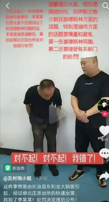 事件的起因是,6月19日,山西長治一段看似“宗教監督”的視頻在全網炸開。視頻裏,一名白帽男子摘下飯店“啤酒免費喝”的橫幅,搬走餐館內的啤酒,嚴詞宣稱:“清真飯店絕對禁止賣酒。”這一幕,如果你在中東看到,也許不奇怪;但當它出現在長治,在中國的山西,就值得我們警惕三分了。