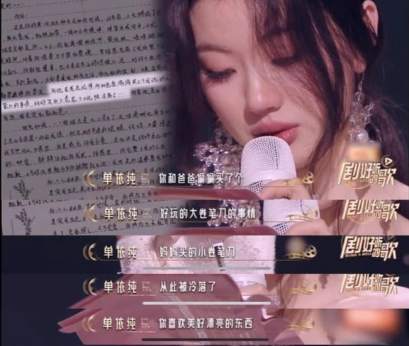 親情的缺失,成了單依純下意識忽視的軟肋,一旦觸碰,就會情緒決堤。在一檔節目中,單依純演繹歌頌母愛的《萱草花》後,收到了一封來自母親的信: