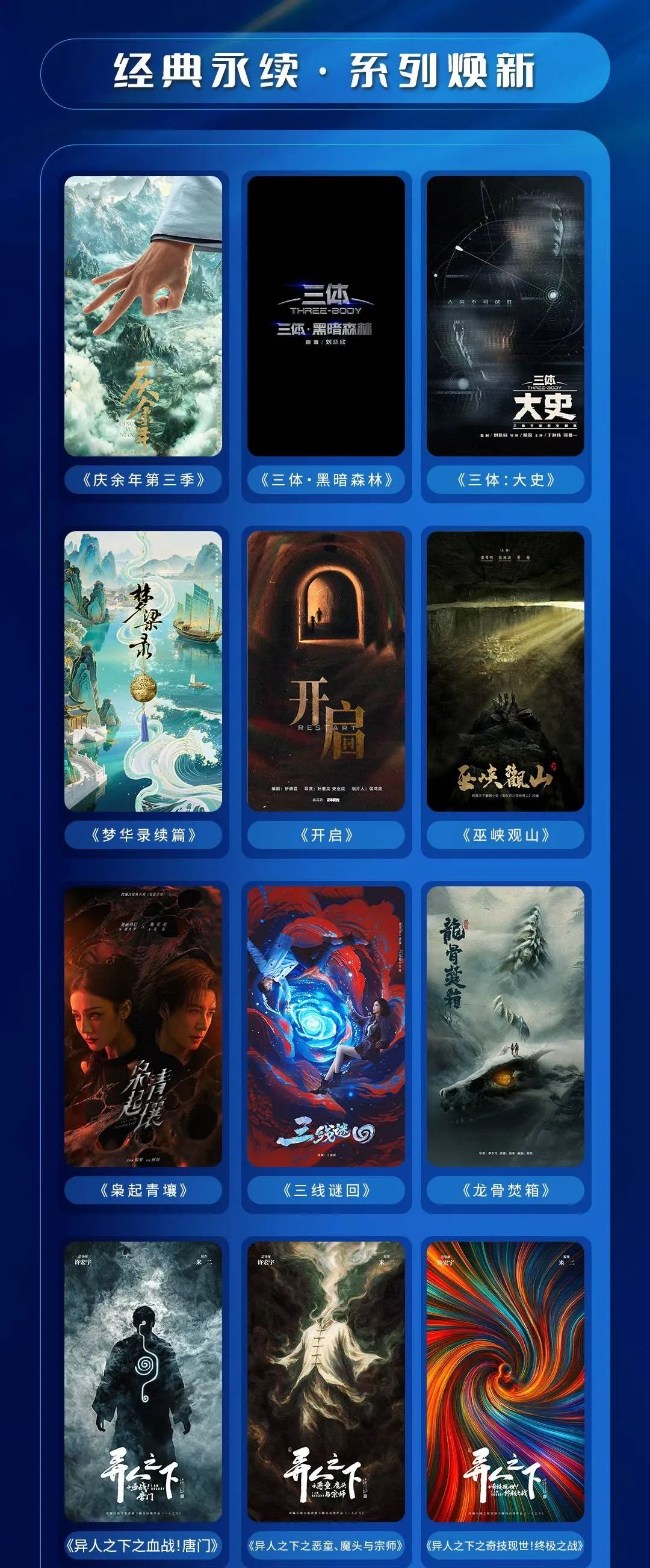 向後問商業,騰訊視頻一方面將全面推行“後驗激勵”模式,通過市場化回報來調動創作者的積極性,另一方面則會在IP運營上縱向推動多季開發,橫向進行IP與劇影漫遊綜和品牌的多元可行性開發。比如片單中的三部《異人之下》作品,既是多季開發的典範,同時也有望在騰訊內部生態中生長出影遊劇漫多元聯動可能。