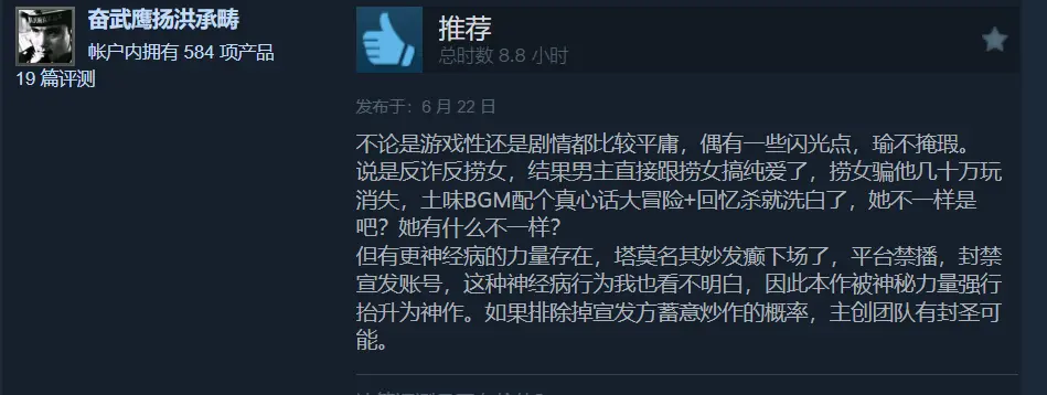 不少遊玩時長長達數十小時的玩家也給出了不錯的評價——