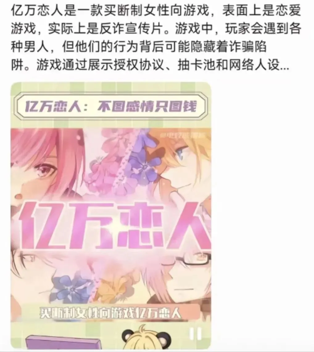 是的,當我們完全拋開這款遊戲內容本身不談,在現如今這個互聯網的大環境中,其實這款遊戲的出現,又一次地將主題為“反詐”的內容,演變成了一場及其病態的“男女對立”上。