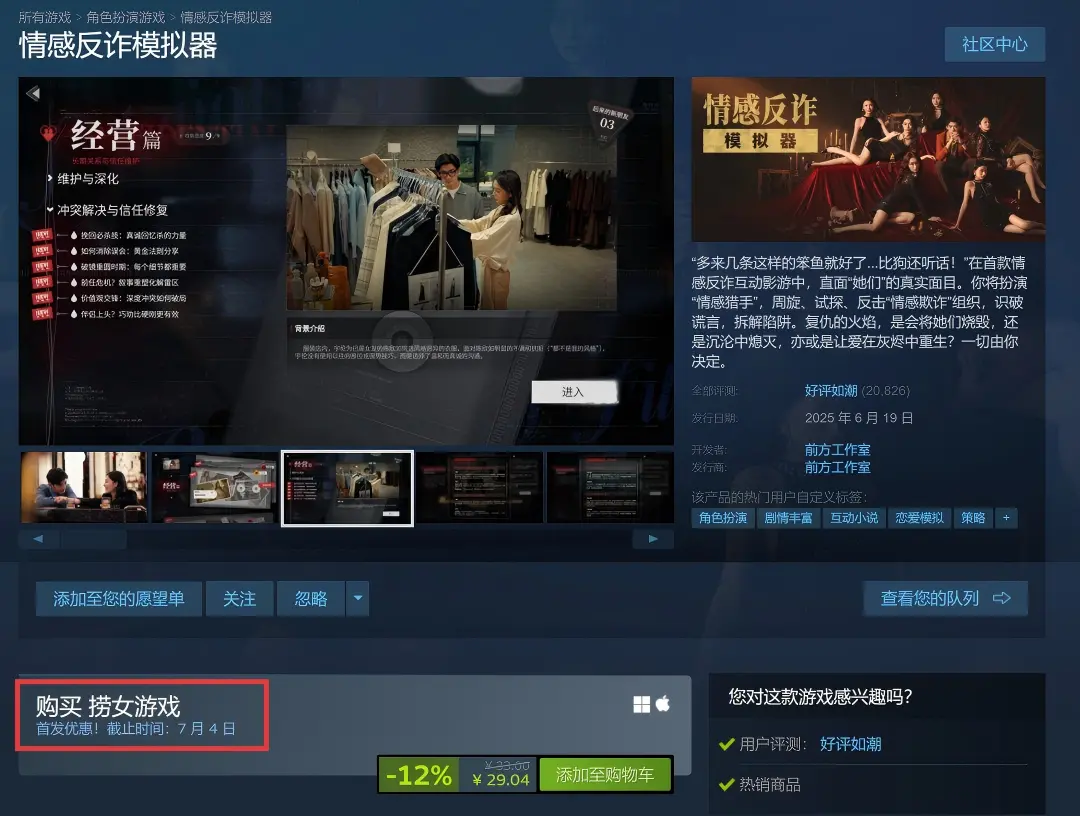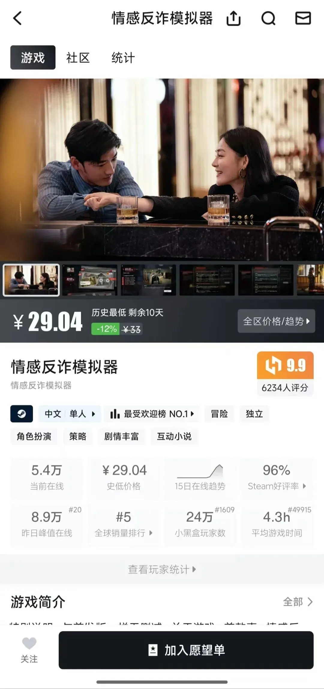 近日,有一款爆火的遊戲登上了Steam中國地區熱銷榜的第一名,全球熱銷榜的第五名——《情感反詐模擬器》。