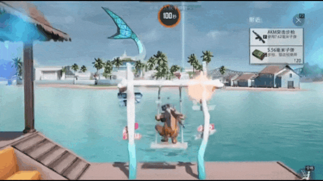 此外,還有能回覆能量、掉落道具以及讓你短暫飛行的“彩虹鞦韆”,用來跳上制高點是一把好手,但也很容易被“老六”當成靶子當場成盒。