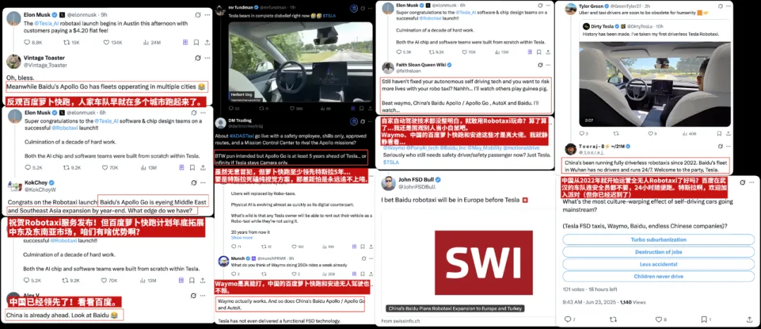 包括中文互聯網在內,普遍對特斯拉Robotaxi的試水亮相給予了寬容乃至積極的反應,媒體和輿論以唱多為主。