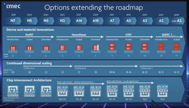 IMEC 作為專注芯片生產基礎研究的權威機構,其研究領域覆蓋新材料、新型光刻技術和下一代晶體管設計,研究成果深刻影響着整個芯片製造業,也使其具備了預測芯片技術走向的強大能力。在 IMEC 的路線圖中,芯片製造的未來發展清晰可見。