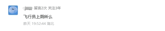 於是就有粉絲留言問,飛那麼長時間,飛行員上廁所嗎?還有人問,飛行員是不是穿尿不濕或者尿袋?