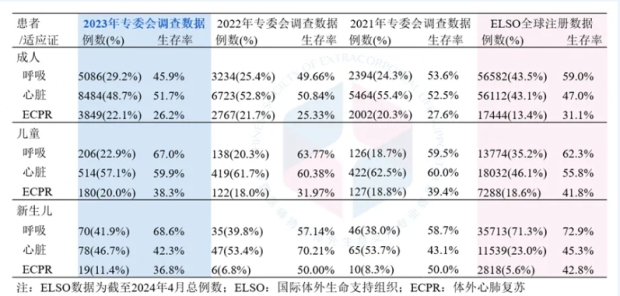 2023年中國醫師協會體外生命支持專業委員會的調查數據顯示,成人心外科使用ECMO的生存率為51.7%。