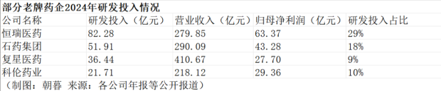 截至2024年底,復星醫藥在研創新藥、生物類似藥項目超80項(按適應症計算),當年其研發投入超過55億,投入規模是淨利潤的2倍。