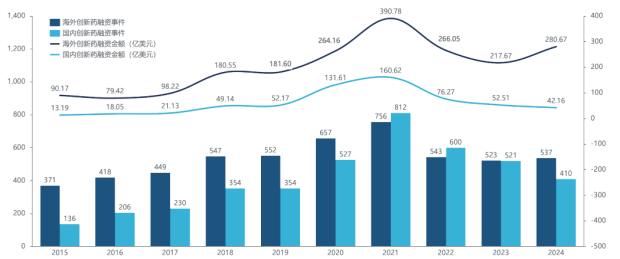 ▲2015-2024年期間全球創新藥領域一級市場融資概況,數據來源:醫藥魔方報告