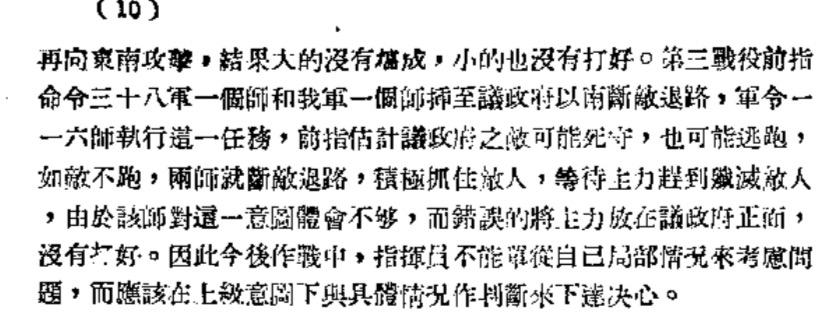 “軍令116師執行這一任務,前指估計議政府之敵可能死守,也可能逃跑,如敵不跑、兩師(指116師和友鄰38軍的一個師)就斷敵退路,積極抓住敵人,等待主力趕到消滅敵人,由於該師對這一意圖體會不夠,而錯誤的將主力放在議政府正面。沒有打好。”
