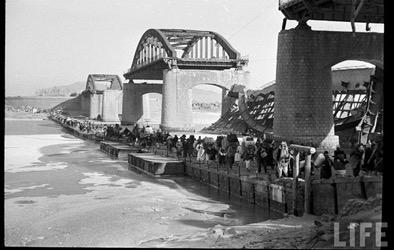 回看高層方面。西線方向,在1月2日-3日夜間,38、39、40、50軍接連對聯軍在漢城橋頭堡發起進攻,雖然這些進攻稱不上什麼“壓制性”,志願軍也未對橋頭堡進行任何“持久的滲透”,但聯軍卻揹負着大量非戰鬥因素造成的壓力:7.5萬官兵和裝備等着運過漢江,同時如何疏散漢城地區的國家、省和地方政府官員、外國使館人員也是個問題。由於橋樑適量有限,渡河工作變得異常複雜,在過去幾天內,所有永久性的橋樑都被摧毀,沒有一座得到修復。此時第1軍身後的漢江上只有兩座工兵架設的橋樑:“一座50噸級的M4-M4A2混合浮橋和一座50噸級的鐵路橋;第9軍身後只有一座50噸級的M2浮橋。更不要提如潮水般的難民了,只有5座浮動人行橋可供難民南逃,這不由得讓人想到1950年6月28日大撤退韓國總參謀長蔡秉德下令炸燬漢江大橋時的悲慘景象。好在漢江冰面足夠堅硬,雖然無法承載車輛,但足以使行人通行。