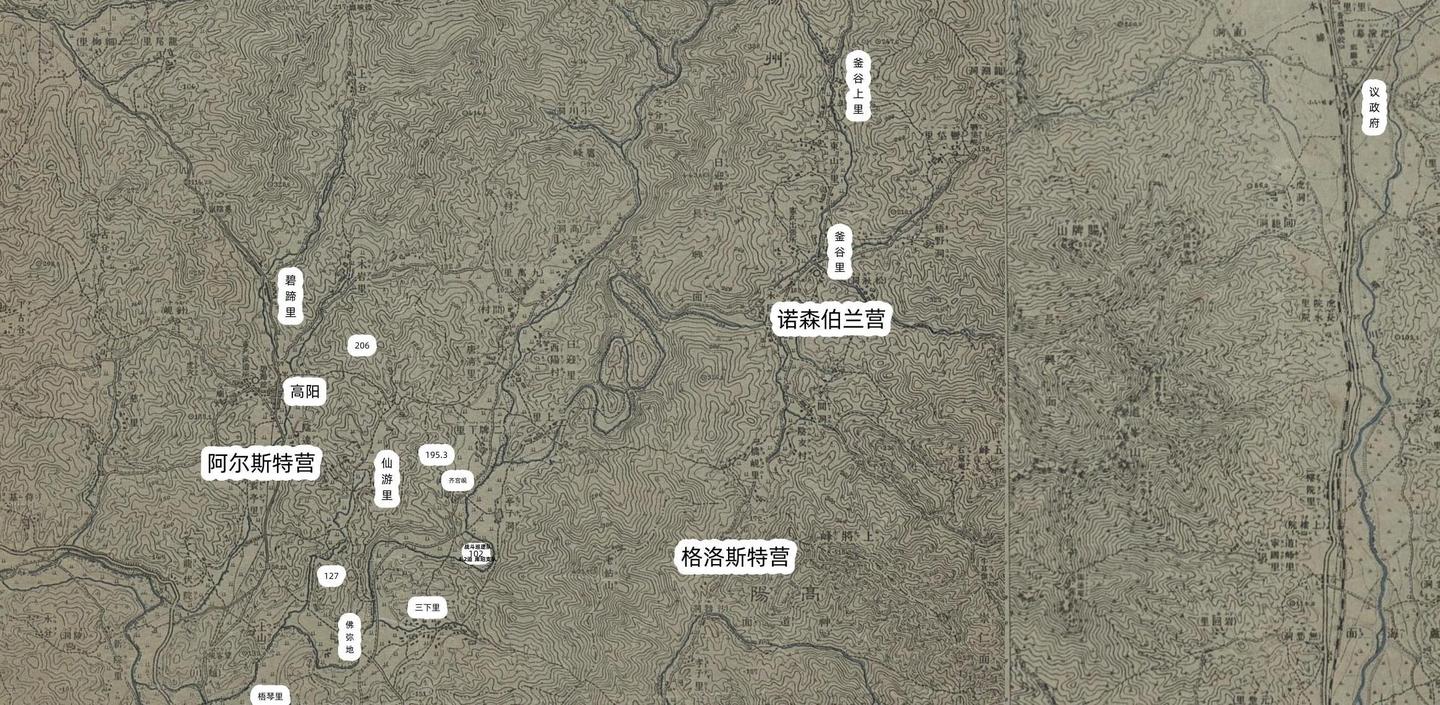 圖中誤把阿爾斯特營標在高陽了,見諒。該營實際應該在齊宮峴