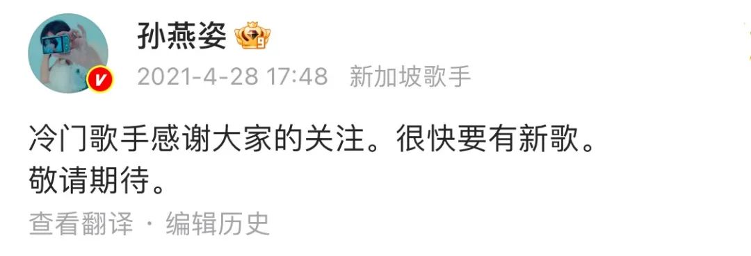 2021年,一位00後網友發帖稱,“推薦一個冷門的新加坡華語歌手孫燕姿”,ta表示自己無意中聽到孫燕姿的歌,“感覺國內不是很多人聽過”,此語一出,迅速炸翻網絡。