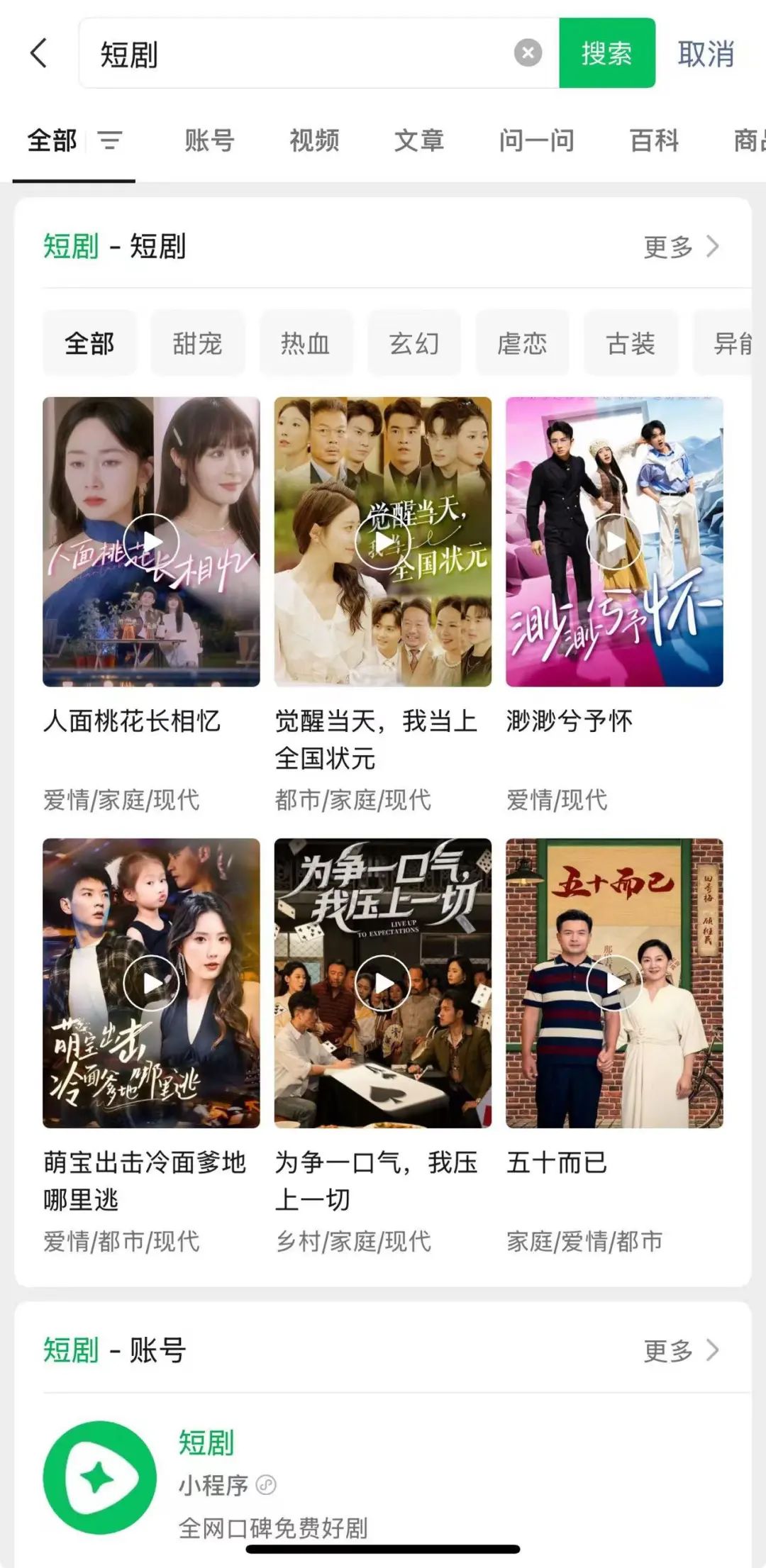 近期,騰訊上線的短劇小程序,堪稱短劇賽道中極有競爭力的新選手。文娛價值官發現,近日騰訊在推出“火星觀劇”這一短劇小程序後,竟然同期上架了一款名為“短劇”的小程序,雙料疊加且將“全網口碑免費好劇”當作Tag,似乎在彰顯騰訊超大庫存的優勢。