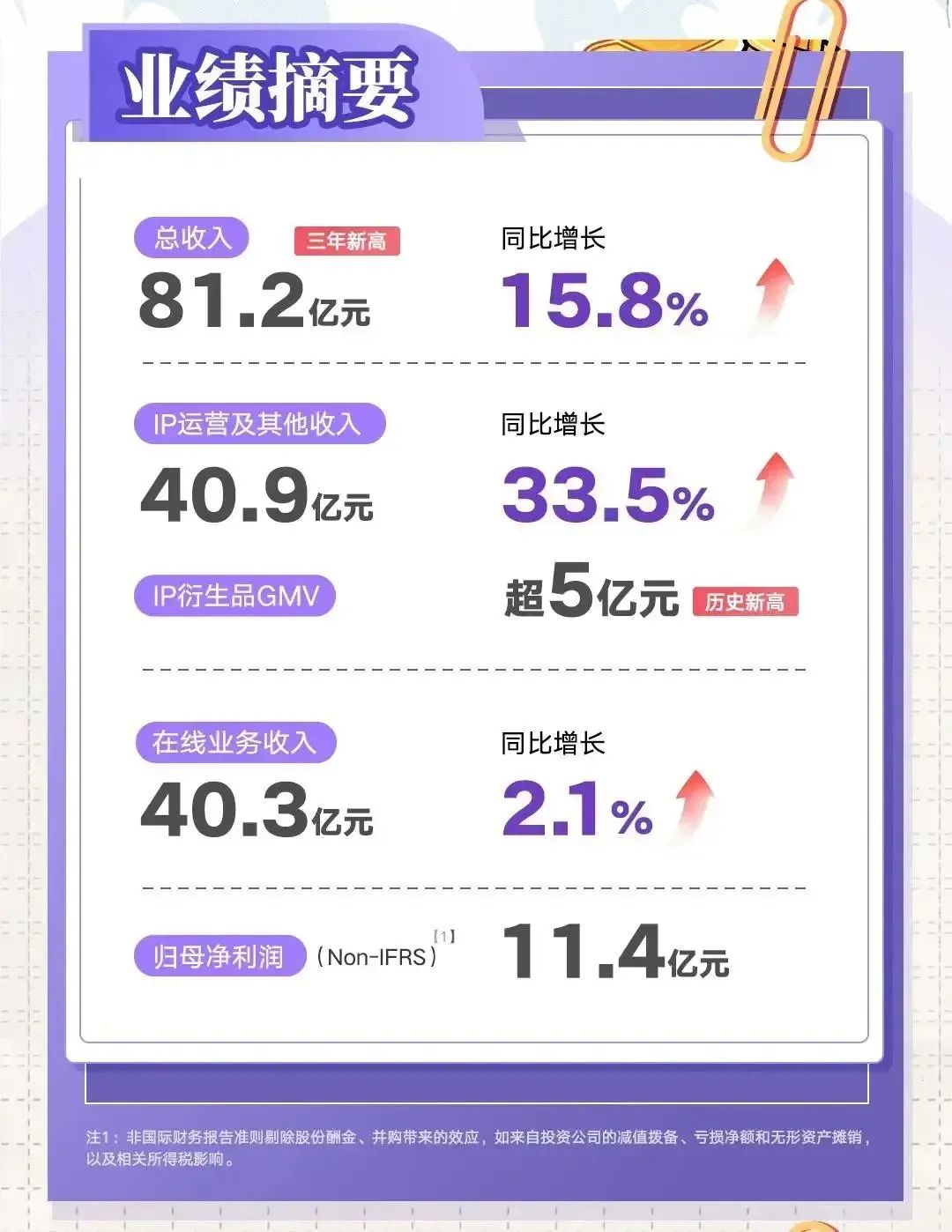 眾所周知,閲文集團被騰訊收購後,一直源源不斷地為騰訊輸送影視劇優質IP,而閲文集團的網文業務,也始終高居行業榜首。2025年3月18日,閲文集團發佈2024年全年業績報告顯示,閲文的業務包含兩大板塊,一是在線業務,二是版權運營及其他。2024年閲文實現收入81.2億元,同比增長15.8%,創三年內最高水平,這在文娛產業鏈中屬於非常亮眼的成績了。