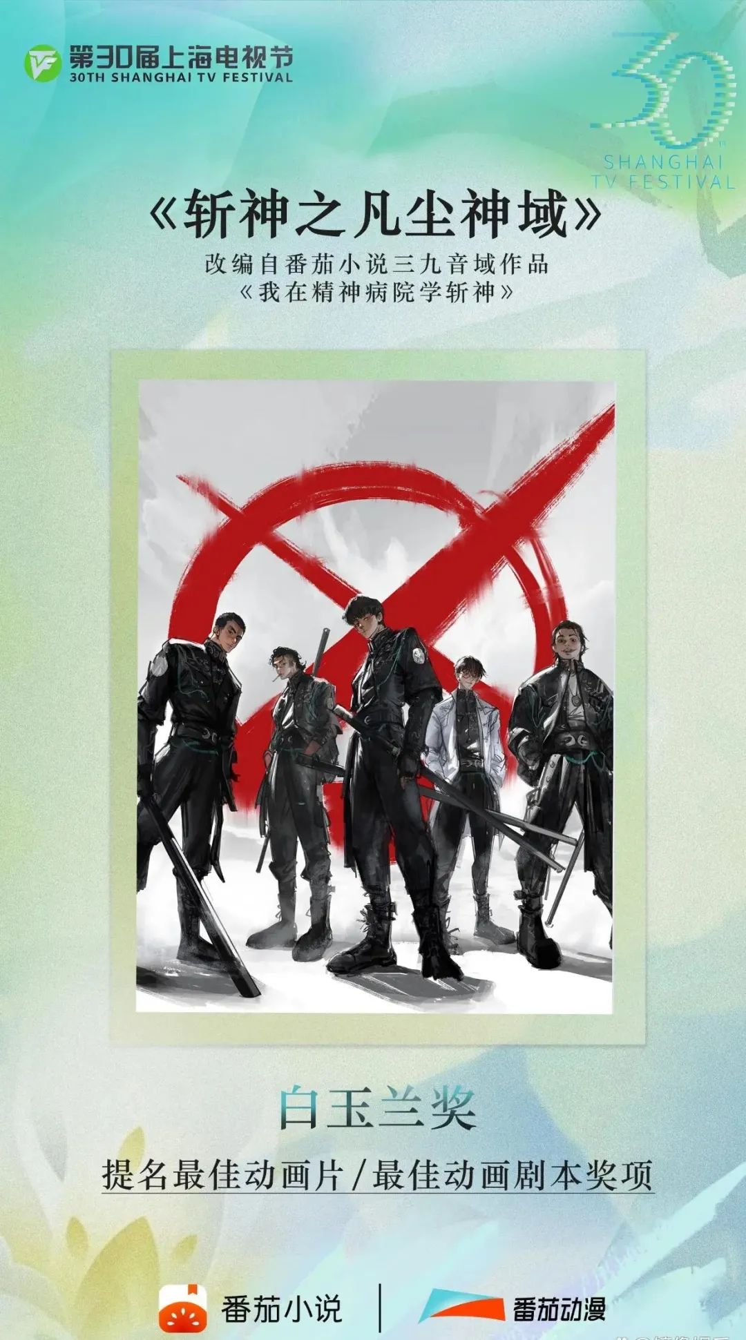 番茄小説的IP孵化和開發能力,一直領跑行業。就在今年的第30屆白玉蘭獎入圍名單中,唯一一部改編自網絡文學IP的動畫作品—《斬神之凡塵神域》斬獲最佳動畫片、最佳動畫劇本兩項提名,這部作品的IP就來自番茄小説。此外,通過番茄小説IP改編的影視化作品《十日終焉》《我不是劇神》《煙雨樓》《束縛春情》《攬明珠》《無與倫比》等等,都在市場獲得高口碑的反饋。