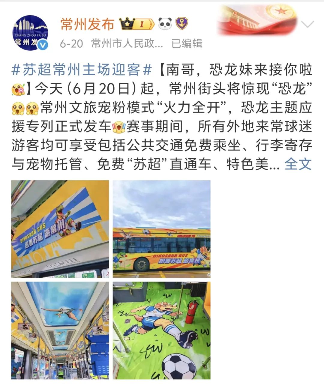 常州最“顯眼包”的特產是恐龍,在蘇超比賽之初,常州就用出了三十六計中的“侏羅紀”。