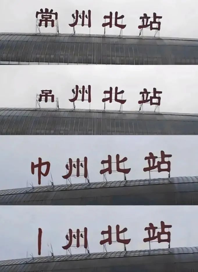 2017年某個雨夜,常州北站“常”字痛失“龸”字頭,晚上僅“吊”字可見,有網友拍下後,“吊州北站”的照片在網上瘋傳。