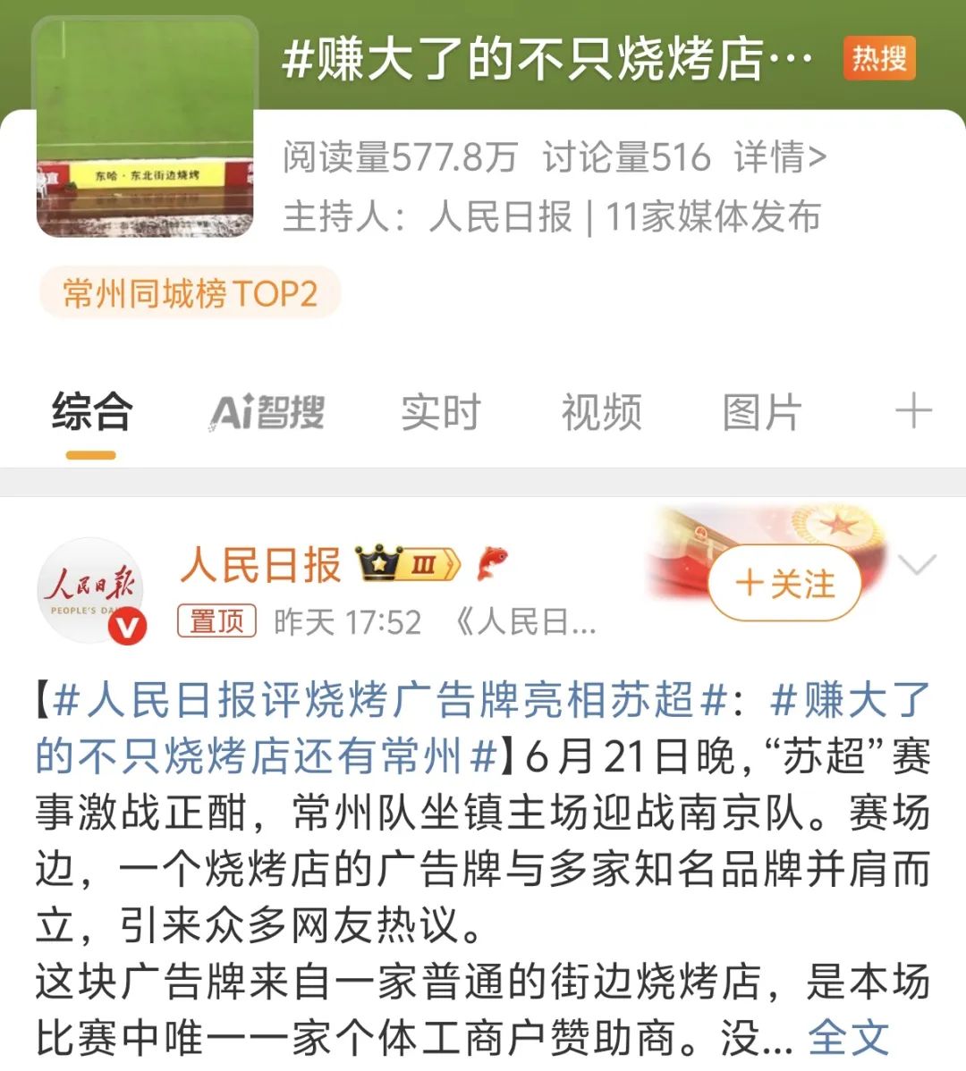 昨天,常州被《人民日報》官方認證為最大贏家:比賽一球沒進,熱搜一次不缺。