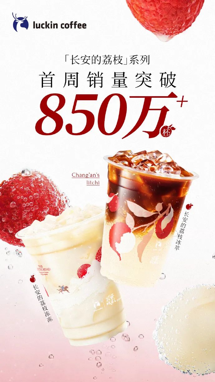 這是日均兩杯咖啡的打工牛馬小李,第四次和瑞幸新品“荔枝冰萃”失之交臂。本來只是對新品有點好奇的小李被激起了勝負欲,打算明天早起搶瑞幸和《長安的荔枝》聯名新品。