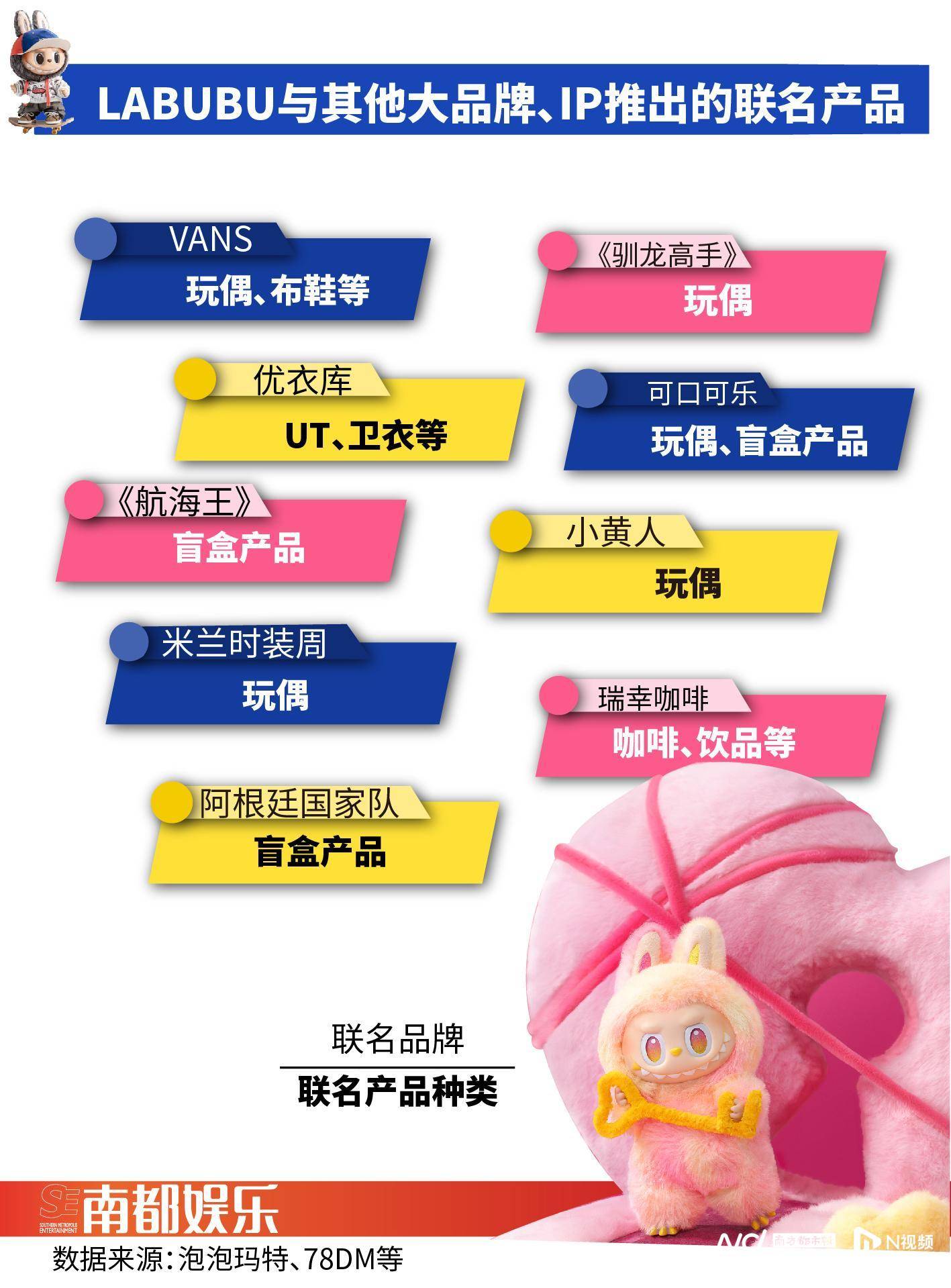 南都記者注意到,LABUBU的聯名款、盲盒隱藏款是二手市場追捧的主要對象。這些年,LABUBU和THE MONSTER系列也積極與其他IP、品牌聯動。