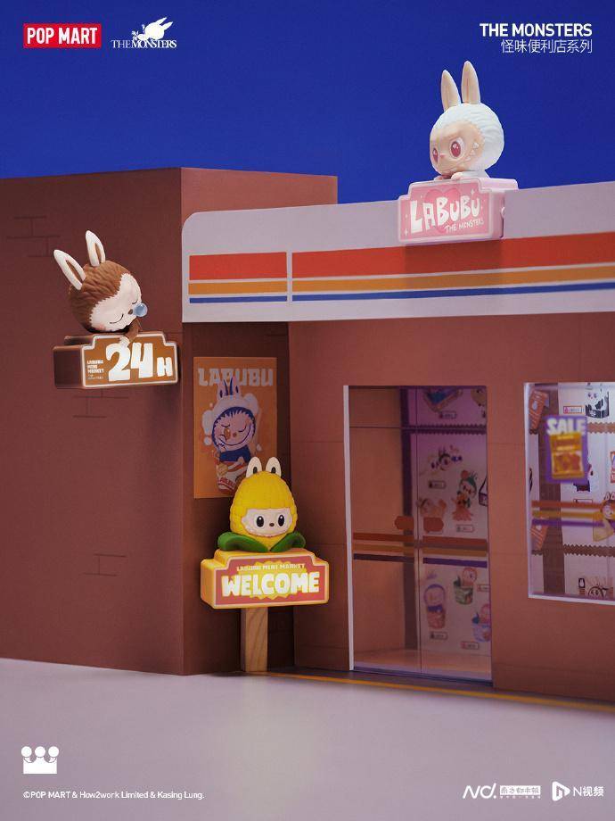 此外,泡泡瑪特近期也推出THE MONSTERS怪味便利店系列主題快閃展覽,包括室外的展覽裝置區和室內的周邊產品售賣區兩個部分。店內出售全新的購物袋、收納包、食物密封袋等產品,並推出限量版店員LABUBU搪膠玩偶。