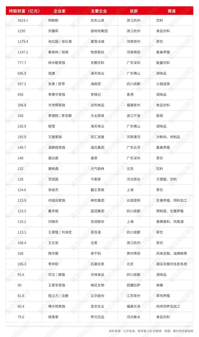 新財富500創富榜出爐,30餘家餐企、餐飲供應鏈企業上榜