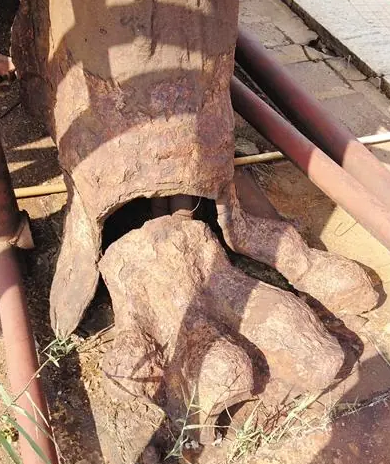 結果,在吊裝過程中,鐵獅子受到了嚴重的損害,42處部位被損壞,包括右前足、尾巴和左後足等位置,損傷慘重。