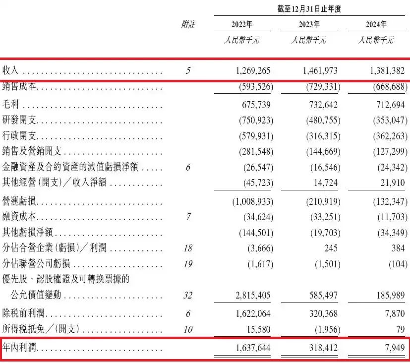 招股書顯示,從2022年到2024年,明略科技營收分別為12.69億元、14.62億元和13.81億元,對應淨利潤分別為16.38億元、3.18億元及795萬元。也就説,去年明略科技營收同比下降5.5%,淨利同比卻下降97.5%。