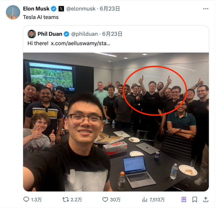 此外,他還轉發了多條消息,比如受邀用户的溢美之辭;員工發佈的合照,在其中馬斯克雙手高高舉起、豎起大拇指;抑或是自己從前展望Robotaxi的視頻。
