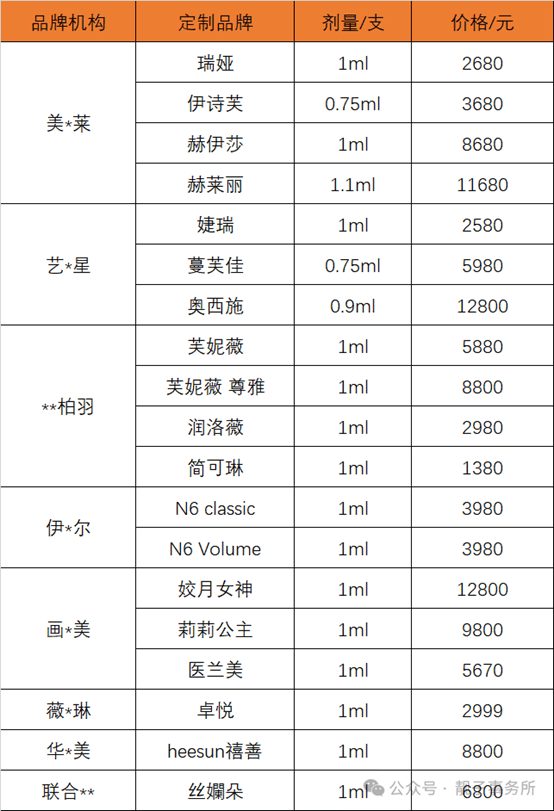於是,各大醫美機構尤其是連鎖機構,都紛紛擁抱這種模式。業內人士表示,2024年,僅玻尿酸一個品類,市場就湧現出超過25種定製品牌。