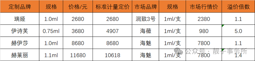 代工廠生產的玻尿酸產品,不同品牌僅更換包裝和含量,其實際成分、技術無差異,醫美機構冠之以“獨家定製”、“機構專研新品”作為宣傳噱頭,從出廠價到終端銷售價,價差可高達10倍及以上。